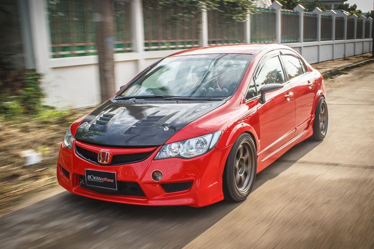 Modifikasi Honda Civic FD2 yang tampil sporty dan begitu resik ini merupakan padu padaan part dari Civic Type R dan Si.