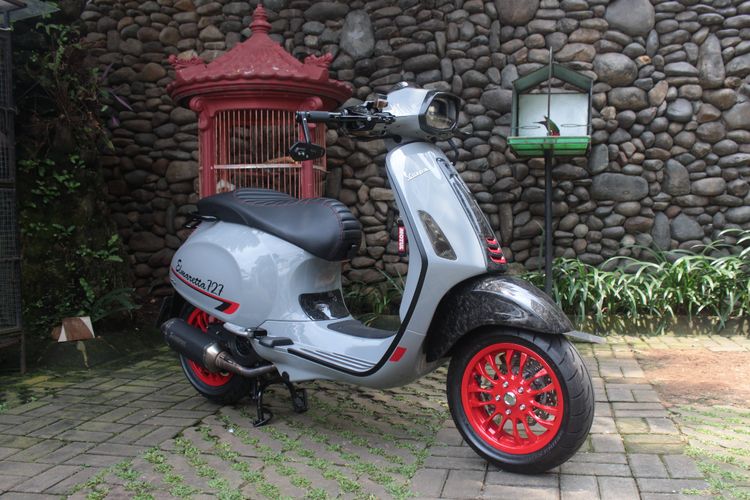 Modifikasi Vespa Sprint, tampil menggoda dengan perpaduan warna bodi apik dikombo karbon kevlar plus part istimewa