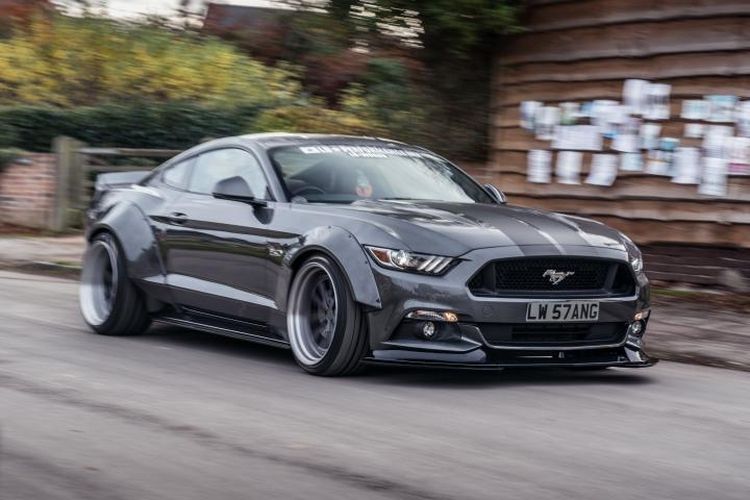 Modifikasi Ford Mustang lansiran 2016 sukses tampil sangar ketempelan wide body Liberty Walk, dan ditopang kaki-kaki kandas