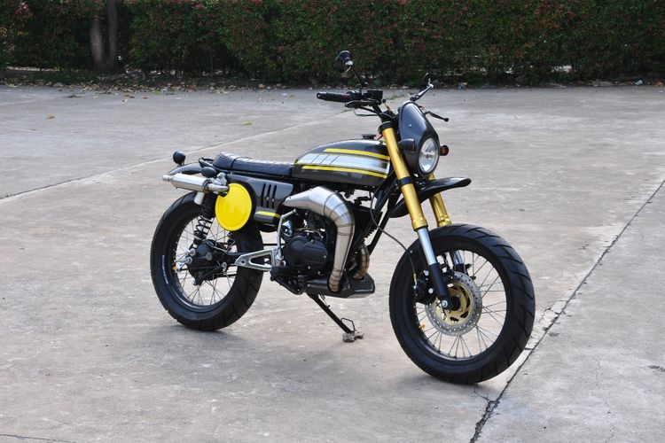 Project Tengkiu dari Katros Garage berhasil menciptakan sebuah Yamaha RX-King tracker yang tampil gagah dan sangar.