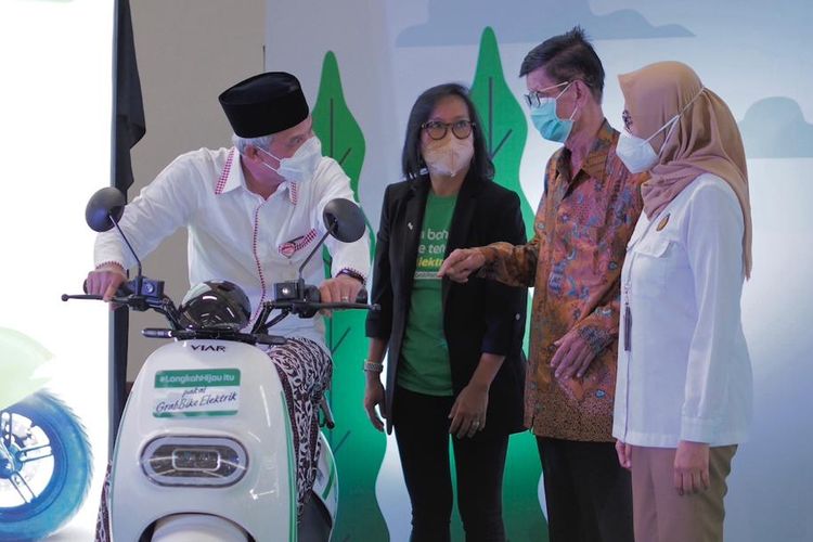 Grab Indonesia bersama Viar Motor Indonesia melakukan acara serah terima 6.020 unit motor listrik Viar di Semarang, Jawa Tengah.