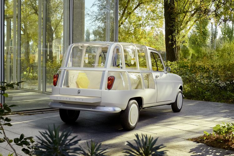 Renault memperkenalkan mobil konsep listrik berbasis Renault 4 yang didesain oleh Mathieu Lehanneur seperti hotel.