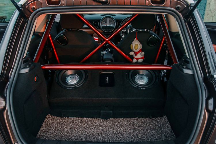 Enggak sangka juga ternyata modifikasi Mini Cooper S punya audio dengan dua sibwoofer besar di kabin. Gokil!