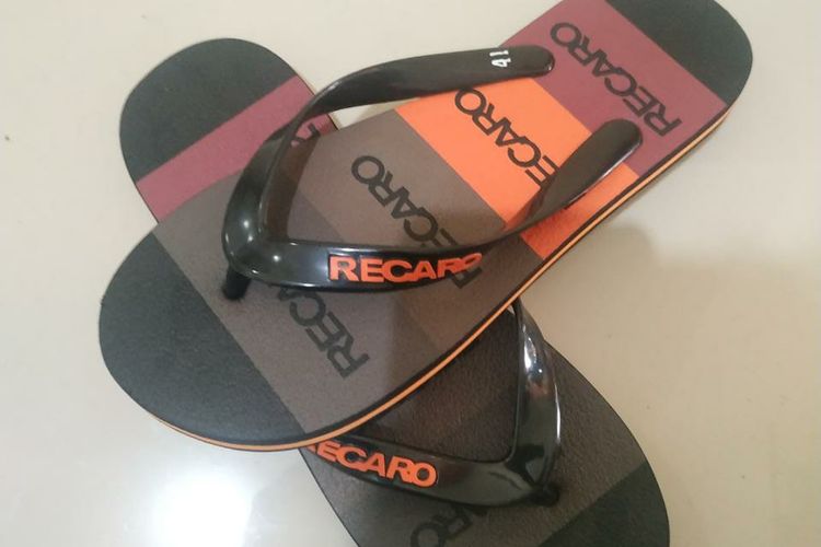 Buat penggemar jok Recaro, kini ada pernak-pernik aksesori yang bisa dipakai harian salah satunya sandal jepit, di Y2P Garage harganya Rp 95 ribuan.