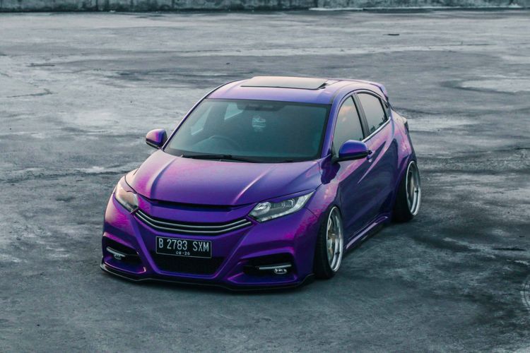 Modifikasi Honda HR-V berjubah ungu tampil semo dengan camber minus andalan seorang DJ.