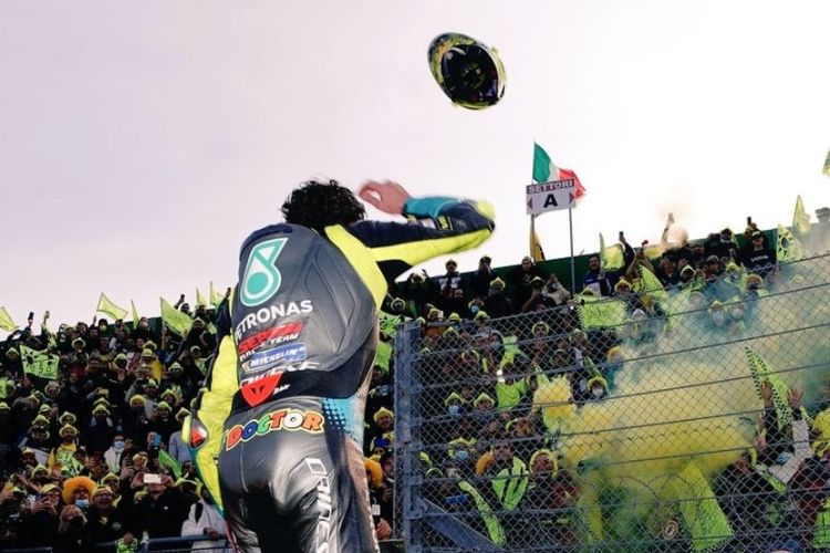 Fans Vale yang bernama Michele Quirini sangat beruntung karena bisa mendapatkan helm The Doctor usai MotoGP Emilia Romagna 2021.