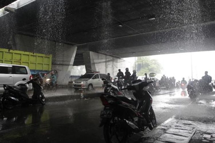 Ketika berkendara naik motor lalu hujan turun, ada baiknya jangan berhenti di sembarang tempat dan cari lokasi yang aman.