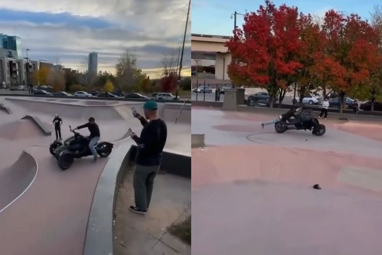 Pengendara Can-Am Ryker satu ini justru coba freesyle di aea husus skatebard dan sentaja. Netizen sampai geleng-geleng kepala.