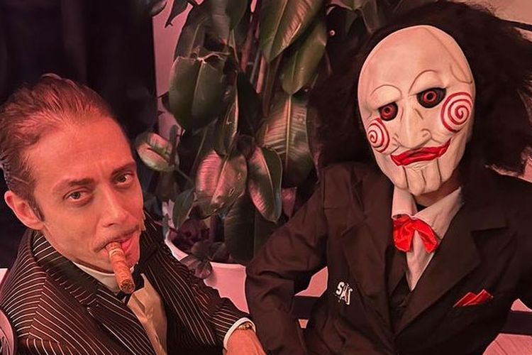 Valentino Rossi rayakan Halloween bersama orang-orang terdekatnya, Andrea Migno ngeri banget pakai kostum Jigsaw.