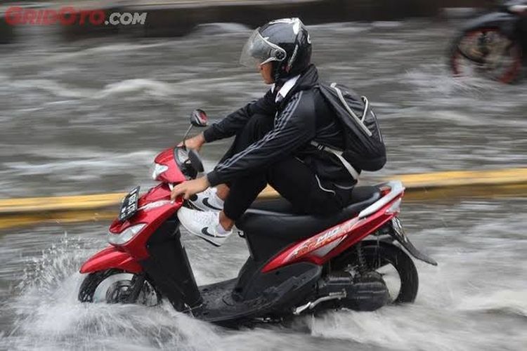 Ada satu kebiasaan yang sering dilakukan oleh pemotor saat melewati genangan air, yakni mengangkat kaki.
