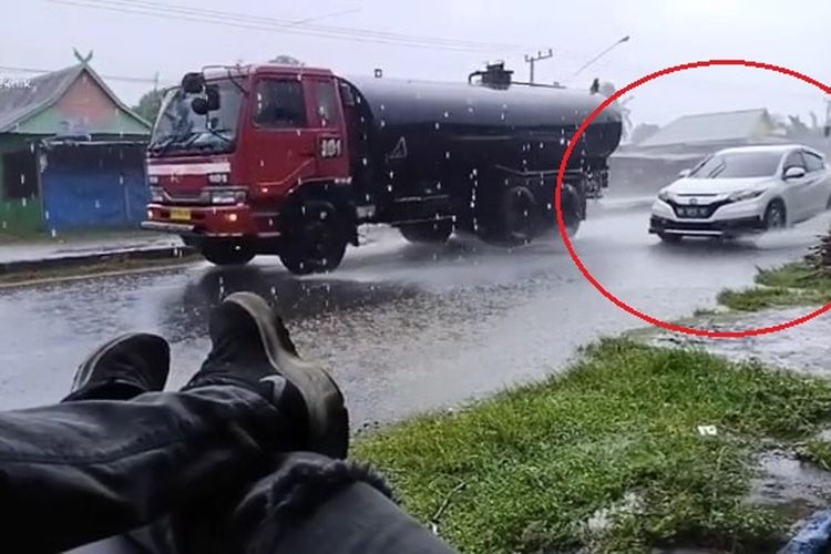 Beredar video Honda HR-V ngebut dan trabas genangan air saat hujan. Eh endingnya malah bikin netizen ketawa.