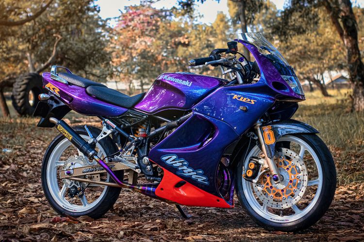 Modifikasi Kawasaki Ninja RR, tampilannya glowing berbodi repaint bunglon plus deretan part racing mewah dan istimewah