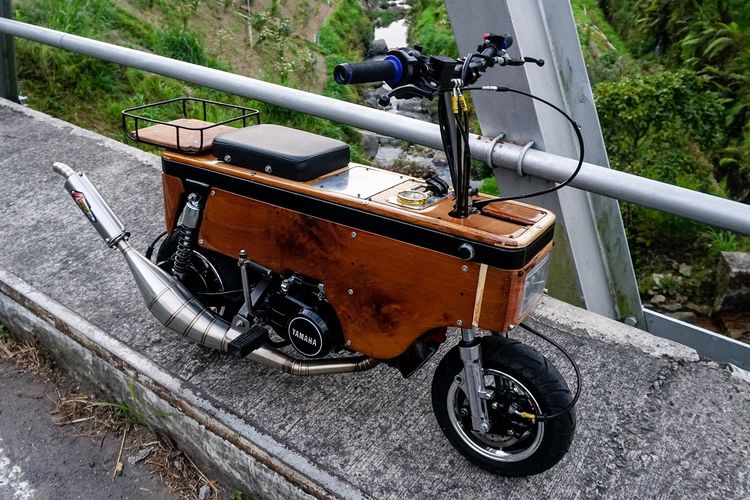 Siapa yang menyangka kalau motor ala Motocompo dan berbodi kayu ini sejatinya adalah sebuah Yamaha Alfa.