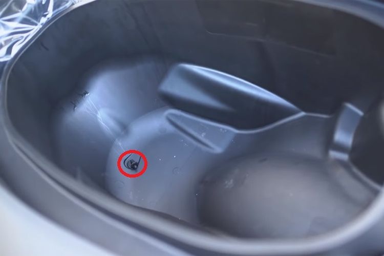 Bagasi motor yang kemasukan air bisa dikuras dengan mudah, bisa ditusuk pakai lidi atau lepas tutup lubang pembuangan air.
