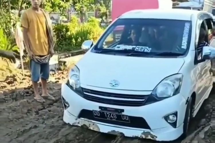 Toyota Agya Ceper Terjebak Saat Lewat Jalur Alternatif Palopo-Walenrang, Eh Harga Bekasnya Segini Lo