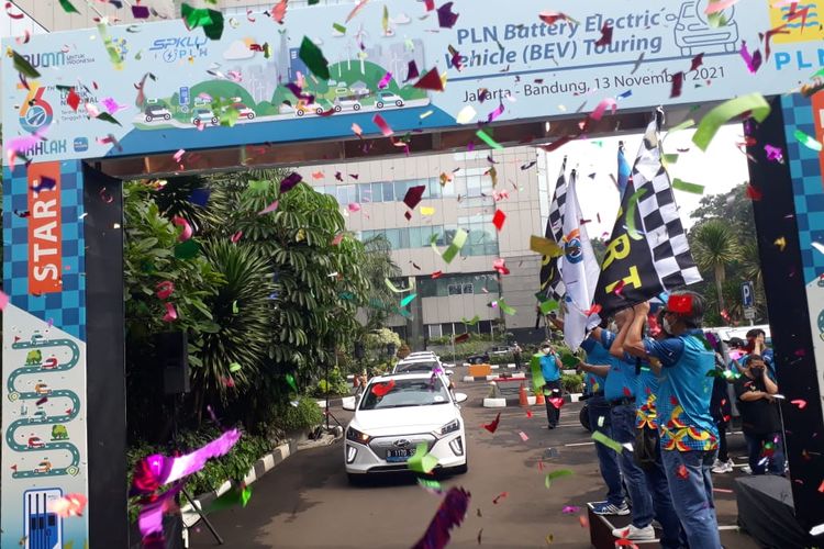 Peringati Hari Listrik ke-76, PLN mengadakan turing menggunakan mobil listrik dan nyaris.