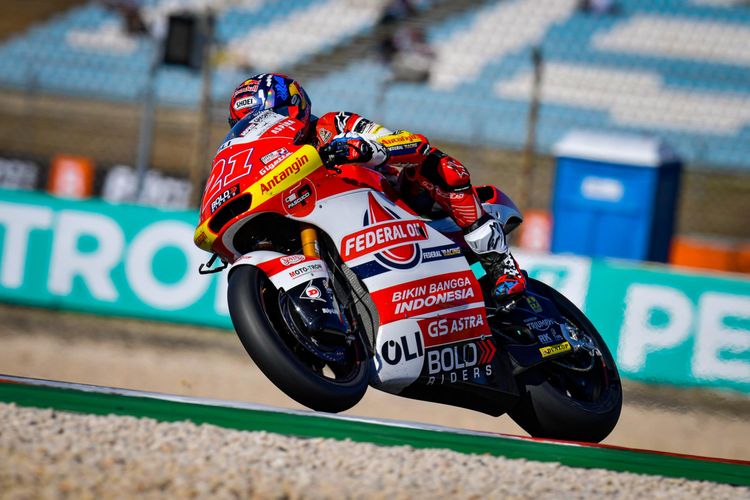 Pembalap tim Indonesia Federal Oil Gresini hampir saja meraih pole position pada kualifikasi Moto2 Valencia 2021, Dimas Ekky di baris paling belakang.