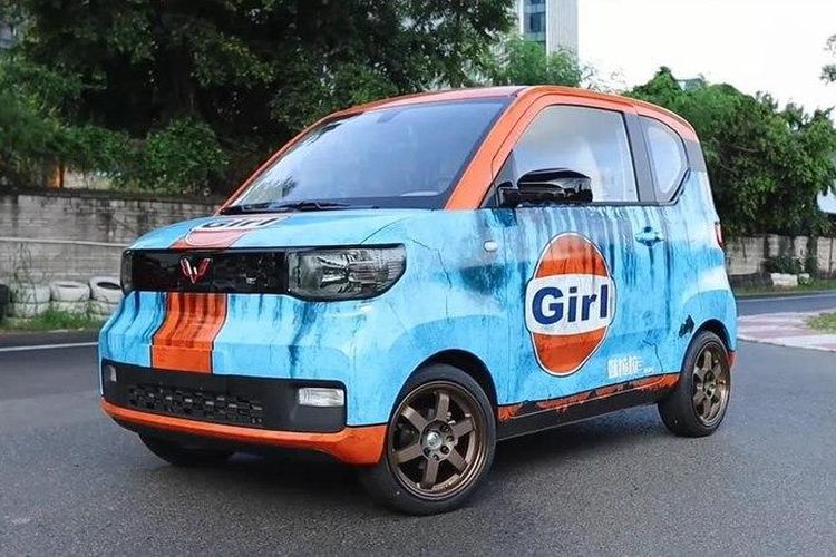 Modifikasi Wuling Hong Guang Mini EV pancarkan aura racing dengan livery dual-tone ala Gulf Racing. Simak ulasannya