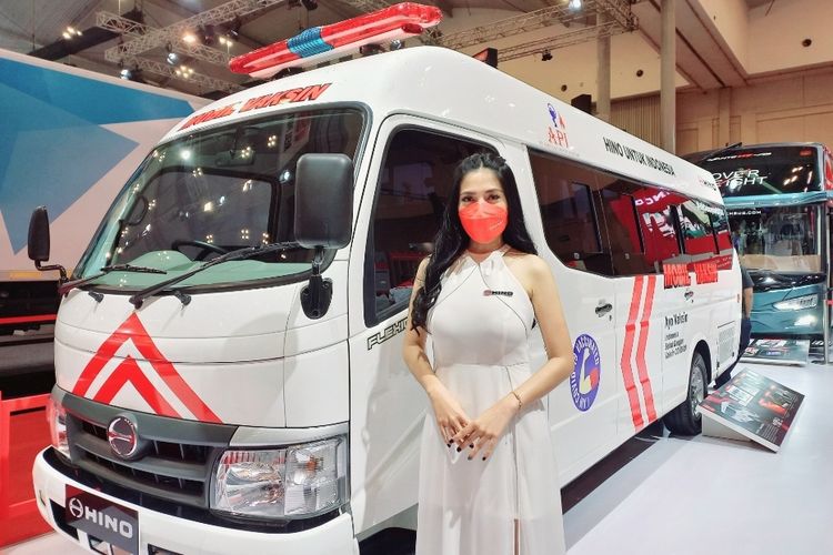 PT Hino Motors Sales Indonesia hadirkan mobil vaksin yang dirakit di atas sasis Hino Dutro 110 SDBL Flexicab, di GIIAS 2021.