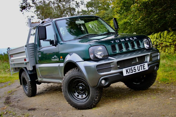 Modifikasi Suzuki Jimny Wide garapan Samson Engineering Limited, Inggris ini berubah bentuk menjadi pikap dan bisa gendong motor trail.
