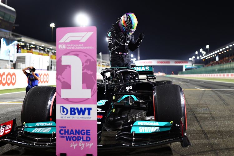 Lewis Hamilton raih pole position di kualifikasi F1 Qatar 2021, akan start di samping Max Verstappen nih.