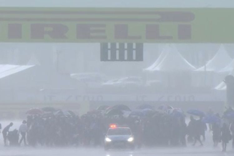 Hujan deras kembali menghantui Pertamina Mandalika International Street Circuit, race 2 harus ditunda sambil menunggu kepastian.