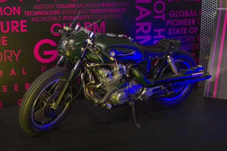 Belalang Tempur yang dipakai di reboot seri Kamen Rider Black atau Kesatria Baja Hitam sudah dipamerkan. Mesinnya mirip kayak punya motor ini lo.