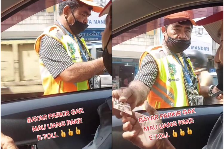 Keren banget nih juru parkir yang satu ini. Bisa bayar parkir mobil pakai kartu e-Toll sob. Netizen bahkan sampai kagum.