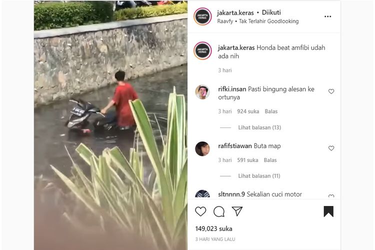 Sebuah Honda BeAT tercebur ke dalam got dan disebut jadi amfibi. Warganet ingatkan bahwa itu skutik bukan motor bebek