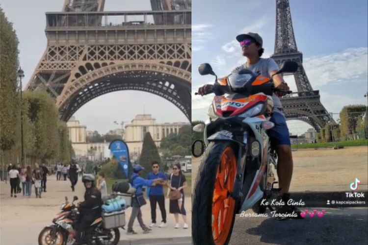 Pasangan suami istri asal Malaysia geber Honda Supra GTR 150 hingga ke Menara Eiffel dan mendapat banyak pujian warganet.