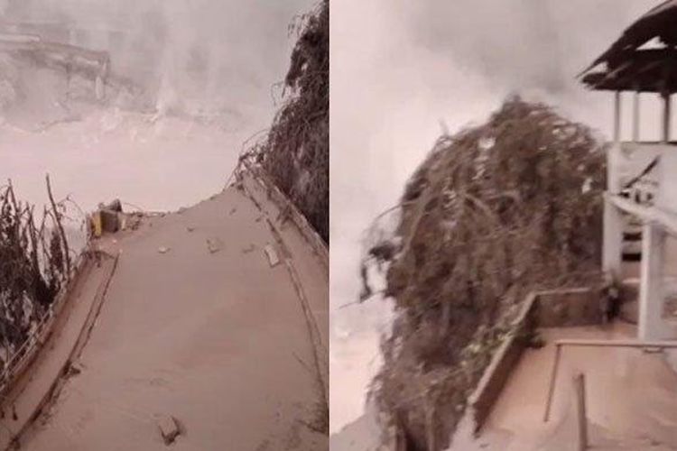 Akibat erupsi Gunung Semeru menyebabkan jembatan Geladak Perak oenghubung kabupaten Malang ke Lumajang Roboh