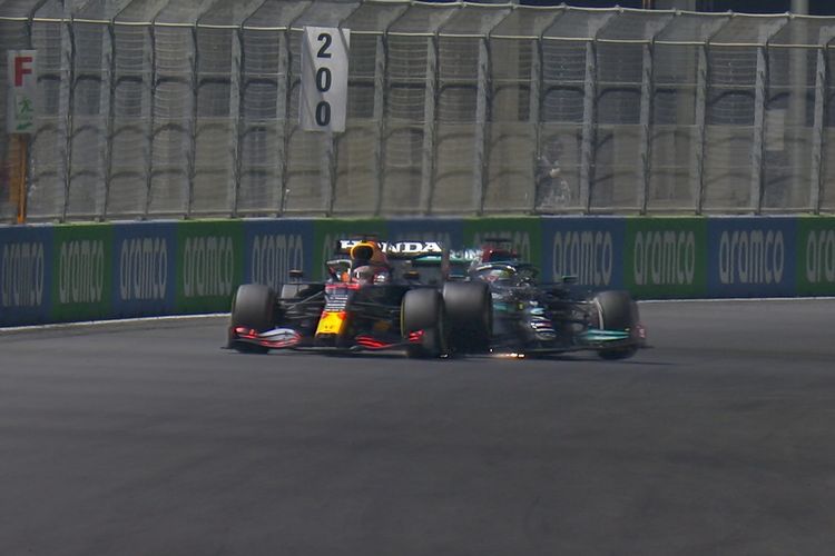 Bersaing sengit sampai terjadi bentrokan, Lewis Hamilton dan Max Verstappen dipanggil stewards setelah balapan di F1 Arab Saudi 2021.