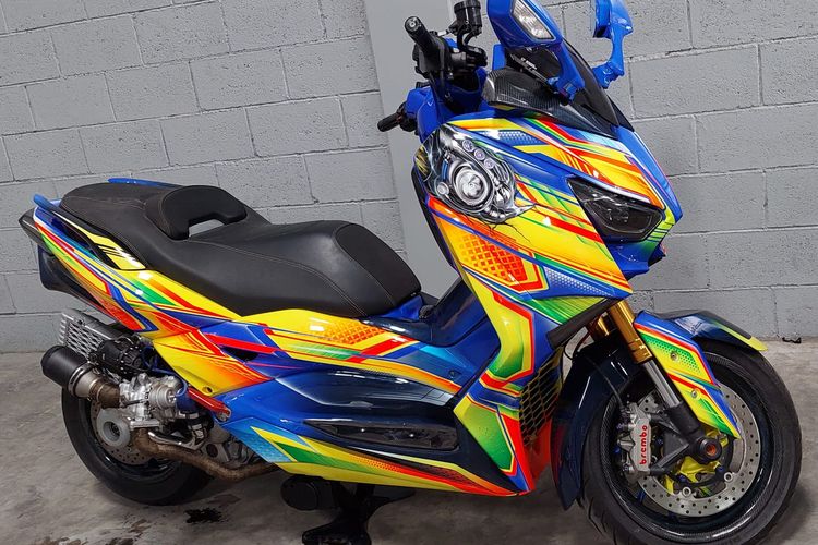Modifikasi Yamaha XMAX gaya street racing, dijejali turbo greddy, piston Wiseco dan berbagai ubahan mesin makin garang.