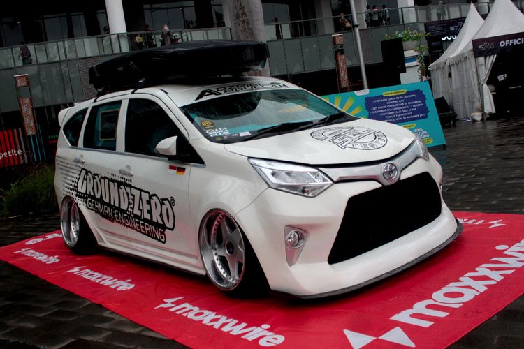Modifikasi Toyota Calya dandan bagged, tampilan kandas dengan pelek Linea plus air suspension 2 titik