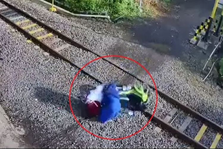Seorang pengendara Yamaha Jupiter Z selamat dari maut saat gagal melintas di perlintasan kereta api Kaliboto Kidul, Jatiroto, Lumajang.
