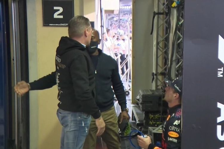 Lewis Hamilton dan ayahnya Anthony Hamilton memberikan selamat ke Max Verstappen yang jadi juara F1 2021.