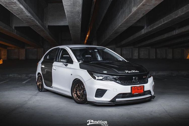Modifikasi Honda City Hatchback asal Thailand tampil atraktif bergaya street racing andalakan part serat karbon dan kaki-kaki meaty