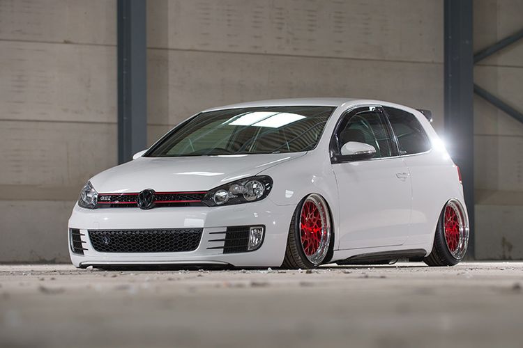 Modifikasi VW Golf Mk6 milik Daniel Coates, pria asal Inggris, sukses tampil modis dan mentereng berkat asup pelek Rotiform BLQ-T warna merah