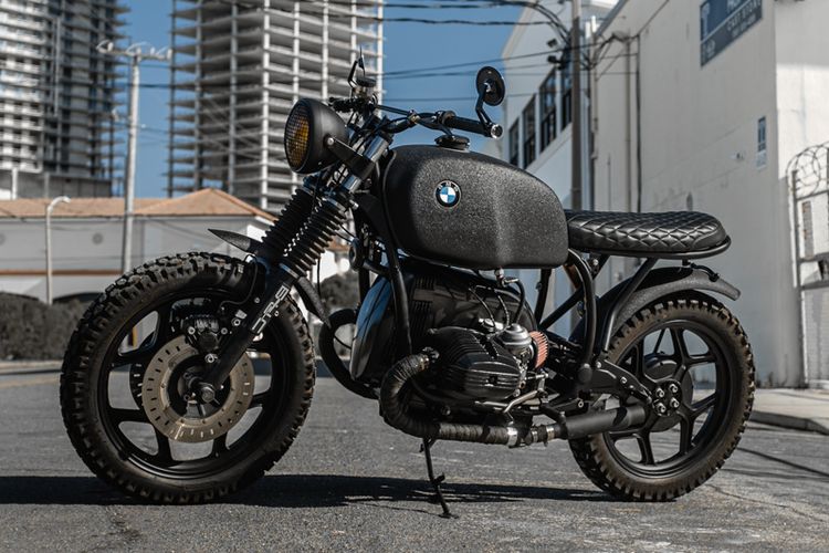BMW R80RT Bergaya Scrambler, Kelir Serba Hitam, Tampilan Makin Garang