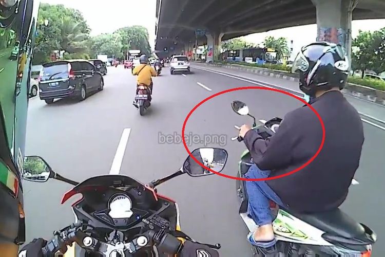 Pengendara Honda BeAT satu ini ketahuan sedang merokok sambil berkendara di wilaah Pulomas. Eh dia malah dapat teguran lucu dari pengendara yang lewat.