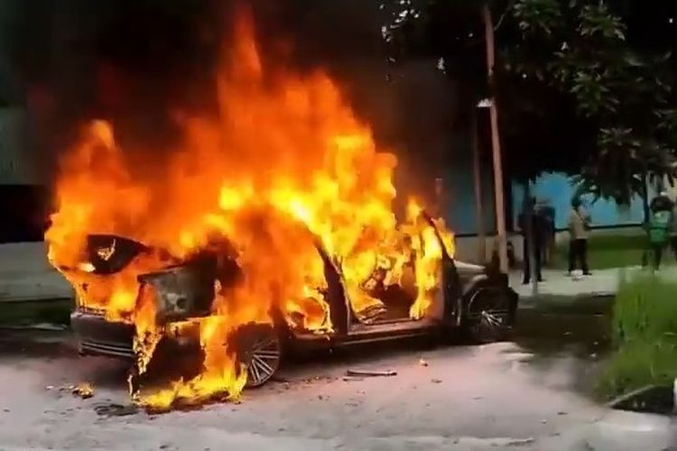 Beredar video BMW 318i E46 terbakar di Jalan Bypass Ngurah Rai, Bali pada Minggu (19/12/2021). Begini kronologi dari polisi.