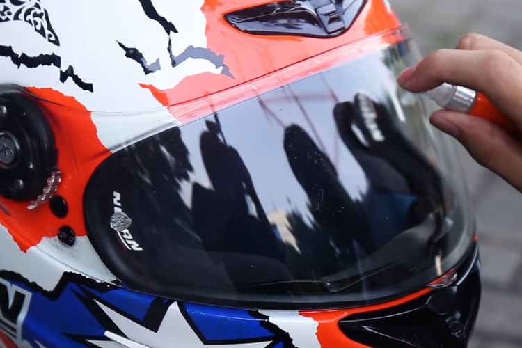 Tinggal semprot sebanyak tiga kali, cairan ini bisa cegah visor helm berembun saat dipakai berkendara di cuaca hujan.