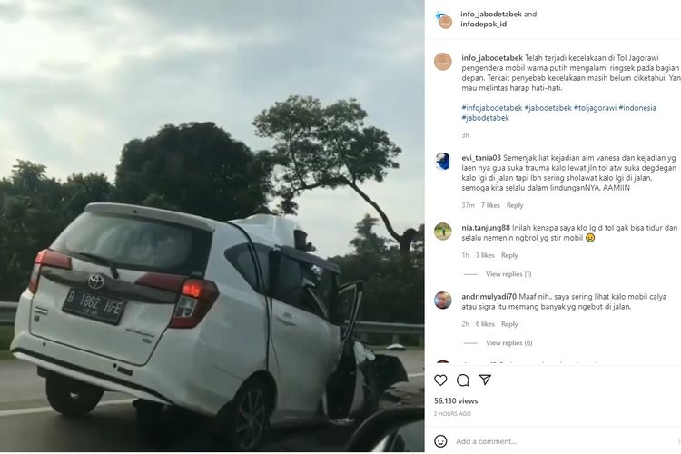 Hati-hati Sob, Toyota Calya Kecelakaan di Tol Jagorawi, Kap Tersingkap Sampai Atap