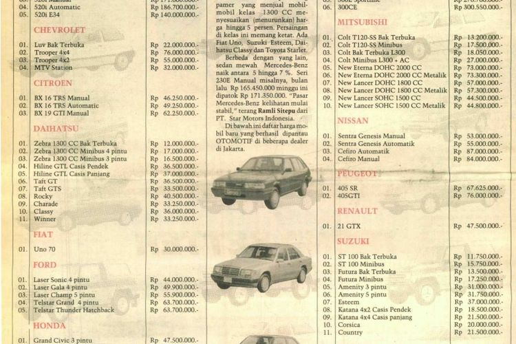 Toyota Starlet Cuma Rp 31 Jutaan, Kijang Rp 22 Jutaan, Inilah Daftar Harga Mobil 30 Tahun yang Lalu