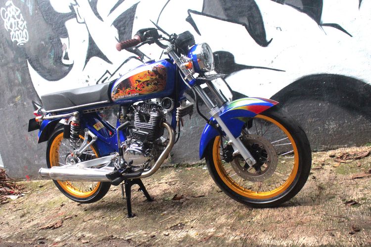 modifikasi Honda cb100 tampil keren dengan bodi air brush wayang ditopang kaki-kaki dan aksesori kekinian