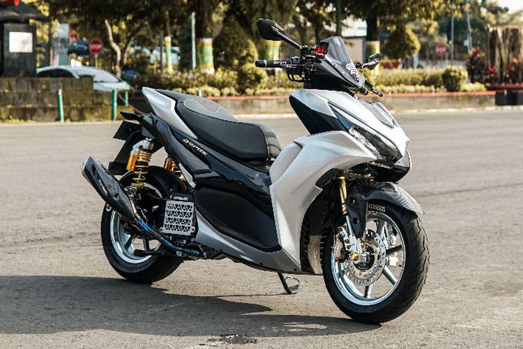 Modifikasi Yamaha New Aerox tampialn makin berisi dan sporty, kaki-kaki pasang pelek RCB SP811 dan sokbreker USD
