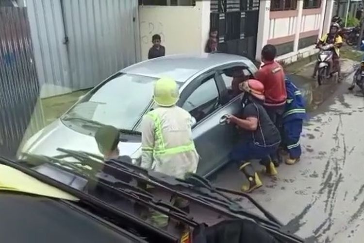 Toyota Yaris dan Daihatsu Taruna Parkir Sembarangan Halangi Jalan Mobil Damkar, Petugas Sampai Turun Tangan