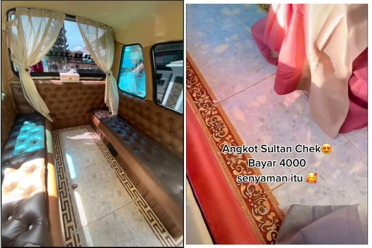 Angkot di Ciamis viral di media sosial. Interior bak rumah sultan dengan sofa dan lantai ubin. Tarif cuma Rp 4 ribu