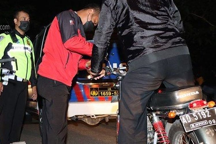 Petugas dari Satlantas Polres Karanganyar niat banget buat razia kanlpot brong. Sampai nyamar jadi warga sipil. Endingnya dapat puluhan motor tuh.