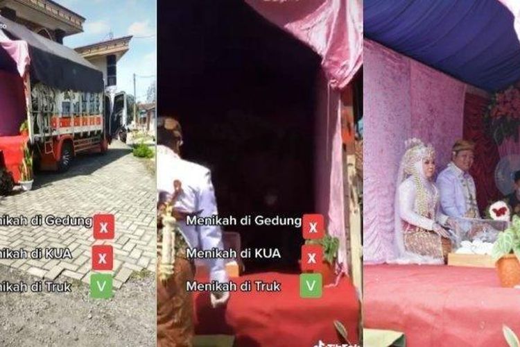 Sepasang pengantin asal Magelang, Jawa Tengah (Jateng) berani tampil beda dengan melangsungkan ijab kabul di bak truk.